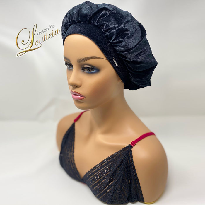 Our sleep bonnets for women are handmade victorian style headwear for bedtime. Made with soft velvet fabric, our plush sleep bonnets will have you asleep in no time. All women deserve a great night’s sleep. And we’ve designed our sleep bonnets for women with you in mind. The soft wide band gently secures the bonnet on your head for a comfy night’s sleep.